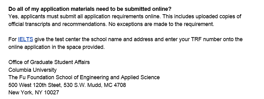 好的。版主,能帮我确认一下,纽约州立水牛城大学的MAE 的雅思地址是在系里吧?只给了个系里的地址,而且GRE送的时候也要了系码。发了邮件没有回我,小米。