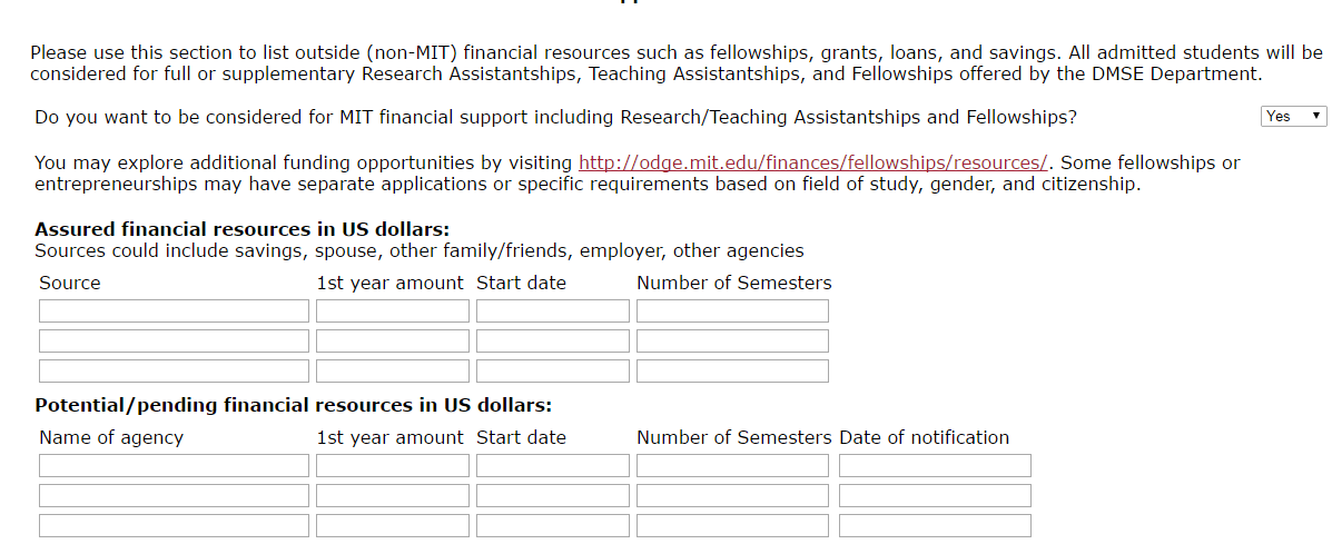 是你目前的资金准备,按MIT的费用要求,大致填一个就行,不要紧的。理论上来说,应该是你家庭的留学资金准备。