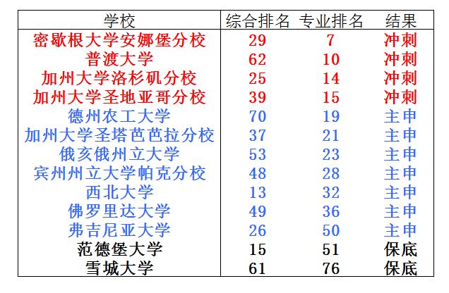 范德堡不要用来保底,主申可以再增加1-2所,西北大学建议换掉,其它还好吧。